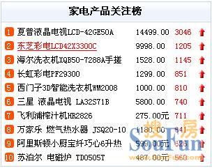 從本周的家電產(chǎn)品關(guān)注排行榜上可以看到,共有4款電視產(chǎn)品上榜,平板電視在奧-運(yùn)后的原材料跌價(jià)風(fēng)波中進(jìn)入低谷,經(jīng)過(guò)國(guó)產(chǎn)與外資的曠日持久的促銷(xiāo)降價(jià)大戰(zhàn),終于再度贏得消費(fèi)者的關(guān)注,在春節(jié)期間,家電銷(xiāo)售業(yè)績(jī)不錯(cuò),而其中最受關(guān)注的無(wú)疑就是平板電視?!?STRONG>相關(guān)新聞:春節(jié)家電賣(mài)場(chǎng)銷(xiāo)售火爆 一半銷(xiāo)售額來(lái)自平板電視】