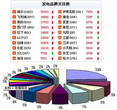 在本周的冰箱關(guān)注度TOP10榜上,海爾以絕對(duì)性的優(yōu)勢(shì)獲得關(guān)注度第一,以高出近一倍的關(guān)注度領(lǐng)先于第二名西門(mén)子,而在本周的榜單上,美菱、齊美等并不熱門(mén)的品牌以不遜于新飛、松下、伊萊克斯多少的成績(jī)上榜。借著家電下鄉(xiāng)的契機(jī),冰箱行業(yè)重新洗牌并非沒(méi)有可能,但是品牌的影響力不能依靠短期的銷(xiāo)售額來(lái)決定,創(chuàng)新與核心技術(shù)的提升才是關(guān)鍵。