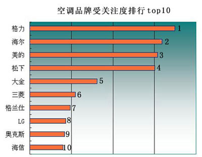 從空調(diào)品牌關(guān)注度排行榜上可以看出,格力、海爾、美的、松下的競(jìng)爭(zhēng)完全處于膠著狀態(tài)。格力的空調(diào)老大地位經(jīng)受著三大實(shí)力派高手的挑戰(zhàn),岌岌可危,而大金品牌,低調(diào)上位,成為四大高手后的第五名。 空調(diào)行業(yè)在08年的銷(xiāo)售業(yè)績(jī)不佳,而能效標(biāo)準(zhǔn)的確立也給一眾廠家?guī)?lái)非常沉重的庫(kù)存壓力,09年的市場(chǎng)依然前景不明不容樂(lè)觀,盡管目前來(lái)看空調(diào)品牌關(guān)注度變動(dòng)不大,但是2009年,將是群雄逐鹿的一年。