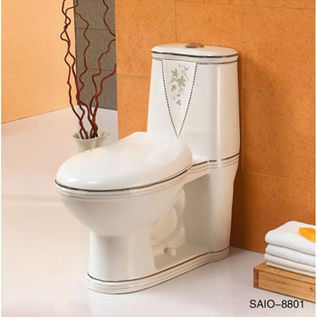 (2)將座便器出水管口對準下水管口,放平找正,在座便器螺栓孔眼處畫好印記,移開座便器。