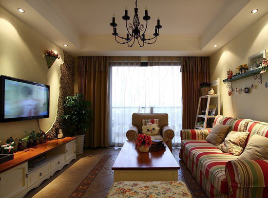 客廳的沙發(fā)色彩上都是溫馨的,有艷麗的紅也有溫馨的淡黃更有簡約的田園感。這個客廳里時刻還會出現(xiàn)童真時刻,80后的小夫妻總是童真未泯。