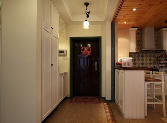 從玄關(guān)處進門,很分明:一邊是鞋柜一邊是廚房,功能空間分得很明確卻也很實用。