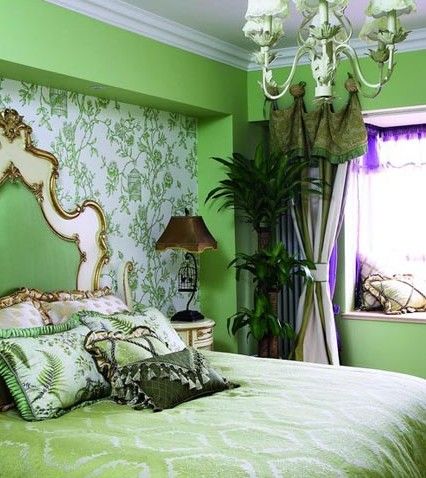 綠色是安靜的顏色,特別適于臥室;純綠色最安靜,淡藍綠色較冷漠,但很清新。