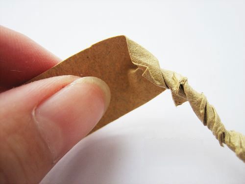 接下來(lái)呢把這紙條朝一個(gè)方向擰,擰成紙繩。