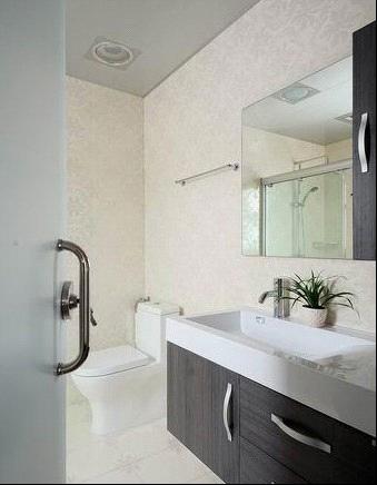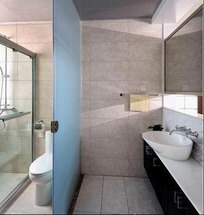 衛(wèi)生間的處理,主衛(wèi)和客衛(wèi)基本上是異曲同工,基本上遵循實(shí)用為主。一盆綠色植物的擺放給整個(gè)空間帶來(lái)了靈動(dòng)力;客衛(wèi)采用干濕分離的手法,鏡子這面墻則與餐廳是想通透的,也解決了衛(wèi)生間常年不透氣的敝處。