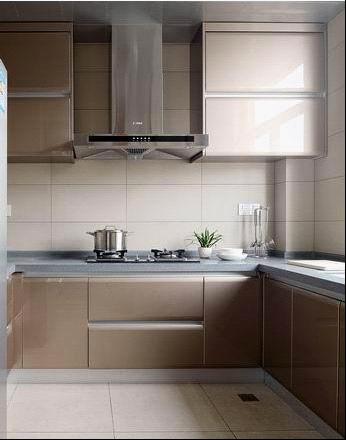 廚房間烤漆板和石英石的結(jié)合,但咖啡色也給整體櫥柜帶來(lái)了幾分大氣。