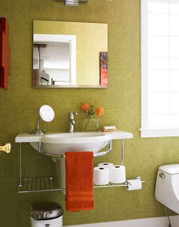 窗戶帶來的新鮮空氣一改衛(wèi)浴間沉悶潮濕的環(huán)境,耀眼的光線帶給你一整天的新鮮??蚩蛳噙B、框框相扣的綠色圖案背景讓衛(wèi)浴間更加歡快。