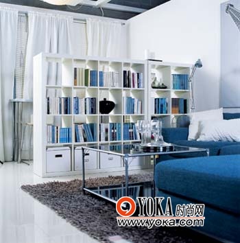 可利用書柜作為隔斷,隔出個(gè)別的空間,而不是用生硬的隔墻來(lái)劃分空間,這樣能適應(yīng)小戶型居住功能。其次,盡量使用透光的材質(zhì)做隔斷,這也是小面積住宅的設(shè)計(jì)要點(diǎn)。因?yàn)橥腹獾母魯嗖坏梢酝腹?,讓室?nèi)更明亮,而且可以讓視覺(jué)有延展性,使室內(nèi)感覺(jué)更寬敞。