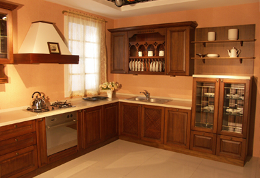 使用實木制作櫥柜門板,風格多為古典型,通常價位較高。其門框為實木,以櫻桃木色、胡桃木色、橡木色為主。門芯為中密度板貼實木皮,制作中一般在實木表面做凹凸造型,外噴漆,從而保持了原木色且造型優(yōu)美。這樣可以保證實木的特殊視覺效果,邊框與芯板組合又可以保證門板強度。