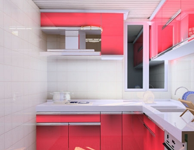 烤漆板基材為密度板,表面經(jīng)過六次噴烤進口漆(三底、二面、一光)高溫烤制而成。目前用于櫥柜的“烤漆”僅說明了一種工藝,即噴漆后經(jīng)過進烘房加溫干燥的油漆處理基材門板。烤漆板的特點是色澤鮮艷易于造型,具有很強的視覺沖擊力,非常美觀時尚且防水性能極佳,抗污能力強,易清理。缺點是工藝水平要求高,廢品率高,所以價格居高不下;使用時也要精心呵護,怕磕碰和劃痕,一旦出現(xiàn)損壞就很難修補,要整體更換;油煙較多的廚房中易出現(xiàn)色差。