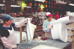 出模的泥坯要經(jīng)過干燥、修坯、洗坯、驗(yàn)坯等工序,確保半成品質(zhì)量