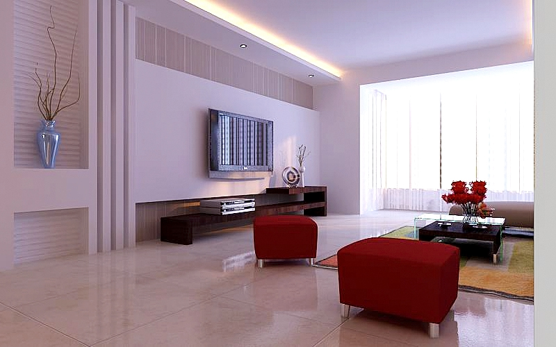 在功能方面,客廳是家品位的象征,體現(xiàn)了主人的品位,有時候朋友或者親戚到家里來做客,這也算是交友娛樂的場合,客廳的電視背景墻采用了簡單的石膏板造型,并做出凹凸的效果,石膏板中間做一個懸掛的臺面,上面放一個有干枝的裝飾瓶做裝飾。貼白色的波浪板做裝飾。電視墻上的豎紋墻紙既簡單又大方。線形的電視柜是密度板基層外貼胡桃木飾面板。客廳的沙發(fā)采用的是紅白相搭配的布藝沙發(fā)。再配上玻璃搭配實(shí)木的餐幾,試想想,一家人都坐在布藝的沙發(fā)上聊天,看電視那是一個多么溫馨的場面!客廳的沙發(fā)背景墻只做了簡單的處理,用細(xì)木工板貼上黑色的亞克力板,做了一個懸掛的臺面,上面可以放裝飾畫等,一些裝飾品非常實(shí)用。