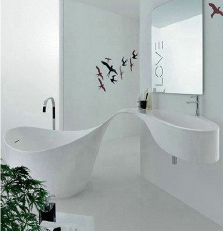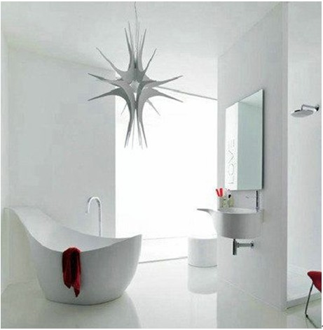 白色是最美好的背景色,它總顯得那么純潔和無瑕。有了白色就有了形態(tài),有了空間。優(yōu)雅的白色浴缸,勾勒出一道美麗的弧線,貌似一艘擱淺的小船,躺在這里會讓你很快放松身心。在這樣的純白空間內(nèi),必定要選擇一款同種風(fēng)格的燈飾,一盞出色巧妙的燈具令整個空間熠熠生輝,白色也可以很精彩!