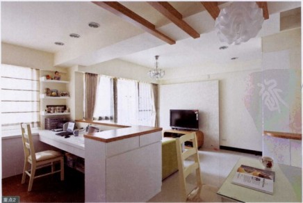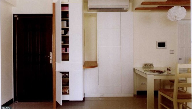 因為是小住宅,所以屋主對于把握空間的利用率更為在意,特別是收納功能的規(guī)劃很重視。除了收納空間的設(shè)計外,屋主對于空間風(fēng)格也有自己的偏好,喜歡明亮、清爽又帶溫馨的空間質(zhì)感。由于室內(nèi)只有50平,除了主臥外,其他空間皆采用開放式設(shè)計。設(shè)計師順應(yīng)空間特性規(guī)劃收納功能,從入門玄關(guān)鞋柜連接餐柜,到哪臺連接書桌等等,皆以復(fù)合式功能概念規(guī)劃,屋主最重視的書柜也以雙層設(shè)計達到雙倍收納,充分利用了空間。