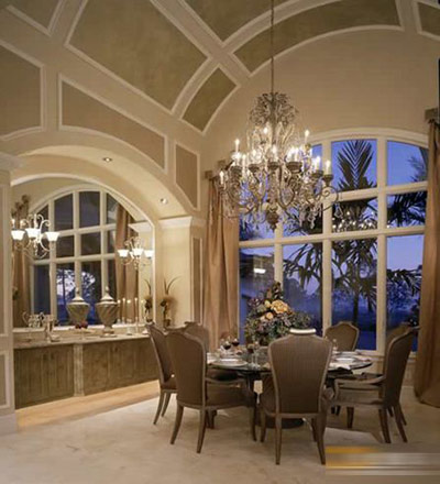 雕飾精美的柱子和由多個拱形相連形成的門廊、以及燈光溢彩的樓梯間都相當吸引眼球。當你走進這座居住面積達到5,816平方英尺的豪華別墅時,每一處都可看出設計師的獨具匠心。