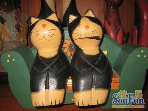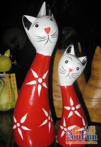 木質雕刻的貓貓造型一對。古樸典雅,小碎花點綴在紅色的底色上,放在房屋的任何一角都是屋子的亮點。相信不少朋友選用的是紅色的沙發(fā),沙發(fā)旁的小茶幾上擺放一對木刻貓,整體搭配特點更佳突出。