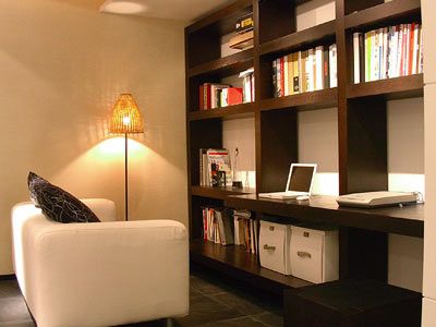 面積充裕的居室中,可以獨立布置一間書房,面積較小的居室可以辟出一個區(qū)域作為學習和工作的地方,可用書櫥隔斷,也可用柜子、布幔等隔開。