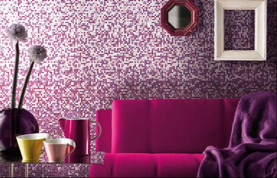 馬賽克一般分為玻璃馬賽克和陶瓷馬賽克,金屬馬賽克就是馬賽克家族中的一種奢飾品了,近視馬賽克也分為三種:一種是在陶瓷馬賽克表面上一層釉,第二種是在其表面粘貼一層金屬膜然后上面再覆蓋上水晶玻璃,第三種則是純金屬做的。當(dāng)然第三種相對(duì)于前面兩種來(lái)說(shuō)價(jià)格是最高的。此圖片中的馬賽克是應(yīng)漸變的手法,從下到上在一色系不變的原則上,由深到淺,逐步漸變上去,整個(gè)空間感覺(jué)上也加強(qiáng)了很多。而且相對(duì)于普通沙發(fā)墻而言,它更是變幻奇窮。
