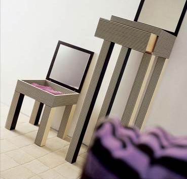 為了迎合人們希望盡可能充分利用空間的需要,現(xiàn)在很多浴室家具不僅僅具有一項功能,例如圖中所示的坐椅,表面有可以打開的蓋子,蓋子一面是鏡子,可用于化妝,而椅坐里面還可以放一些零碎物品。高一些的帶抽屜的柜子也是如此。