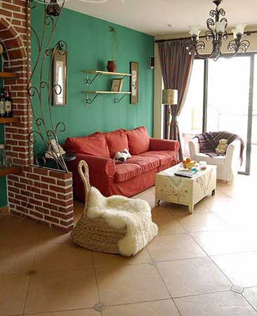 橘、紅、黃的暖色彩,與其對比的藍、綠、紫冷色彩,相互搭配起來,除了鮮明,還能產(chǎn)生韻律感。同樣一組藍色沙發(fā),在白墻或橘紅墻或黃墻的背景之下產(chǎn)生不同的感覺。藍與黃可再加一個中間色綠色來調(diào)和。