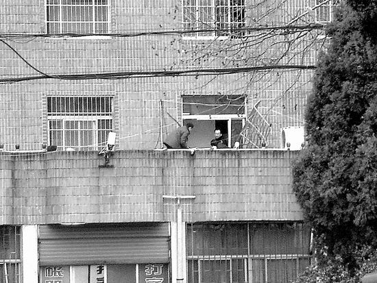 記者注意到,固鎮(zhèn)縣財(cái)政局辦公大樓為五層樓,從一層到四層的玻璃窗均有防盜窗防護(hù),只有五樓的過道臨街窗戶沒有封閉。殷勇正是從五樓打開一處窗戶跳下樓,摔至二樓平臺不幸身亡的。