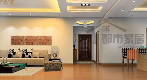 進入房中,一眼望去是一片淺米色世界,柔和溫暖、儒雅淡定,一看就是人到中年后才會選擇的生活情調(diào)。入戶門的正上方有一個圓形的小吊頂,寓意著一家人的生活吉祥圓滿。