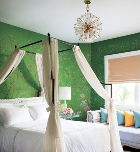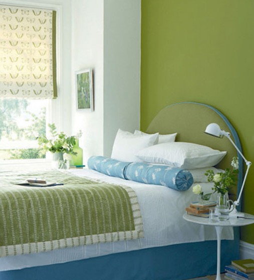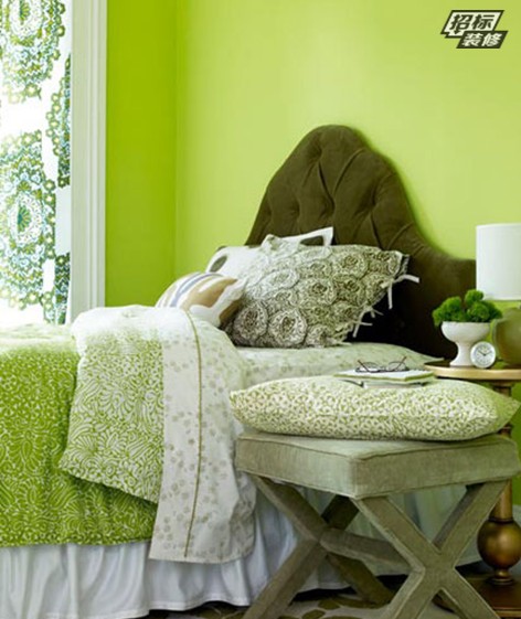 同樣是色彩艷麗的臥室,同樣是選擇了綠色,在這個(gè)臥室更多的是白色與藍(lán)色來襯托綠色,更有春天明媚感。多數(shù)人都會喜歡這樣寧靜美好的房間里,找一個(gè)下午,躺在床上,看著書籍,聽著自己喜歡的音樂,這才是生活本該有的樣子。