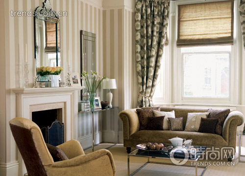 人們喜歡在客廳運(yùn)用中性色調(diào),認(rèn)為這樣可以永不過時??墒牵行陨{(diào)、實(shí)木家具與厚重沙發(fā)面料的組合,往往令整個空間顯得暗淡陳舊。室內(nèi)設(shè)計師的竅門是:利用鏡子和玻璃表面的裝飾品,為空間帶來閃亮高調(diào)的效果。