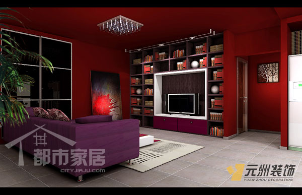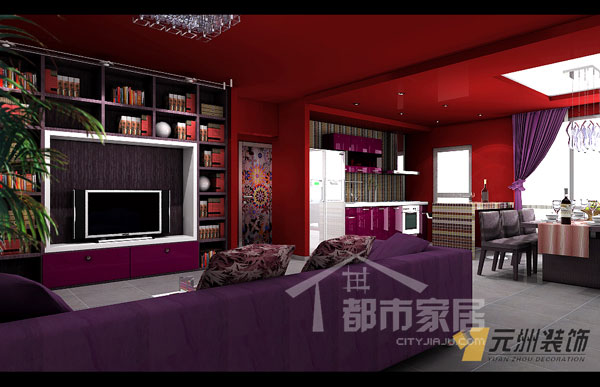 深重的紅色和紫色搭配在一起神秘莫測,嫵媚卻不輕浮,然而客廳的采光條件并不是很理想,用這么重的顏色使屋里看起來更加黑影憧憧,小編于是問設計師住在里面會不會感覺慎得慌。設計師說:“業(yè)主就是這么要求的,別忘了她是電影人。我去過她的工作室,比這里還要陰暗得多,可能他們習慣了這樣的環(huán)境吧?!编?,小編感覺走進這里真像是走進了電影院。