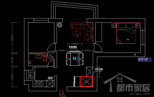 設(shè)計師首先向都市家居記者強調(diào)了一點:標(biāo)紅1的方塊區(qū)域是一根“柱子”,在量房的過程中設(shè)計師就發(fā)現(xiàn)了它,但是業(yè)主表示也不知道里面是什么,房型圖上也沒有關(guān)于“柱子”的標(biāo)注。設(shè)計師和業(yè)主決定砸開墻面看看,如果里面沒東西,就把這塊空間推進(jìn)去,還能增加一些房屋的面積。這一砸不要緊,砸出了06年春晚小品《如此裝修》中的情景:墻的那邊是鄰居,最后只能把墻面又補了回去。