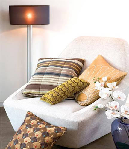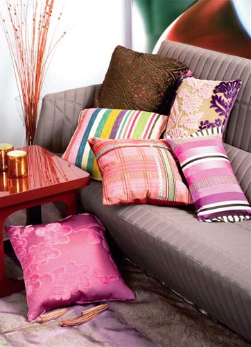 點(diǎn)睛之筆:彩條靠墊 呼應(yīng)沙發(fā)