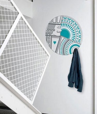 白色的墻面上裝飾一個掛鉤,如果不設(shè)計(jì)好很有可能破壞室內(nèi)的美感,還會顯得很突兀。如果我們在這么墻壁上手繪一幅小圖案,就會達(dá)到不一樣的效果呈現(xiàn)給大家,會讓你的居室變得美麗又可愛。