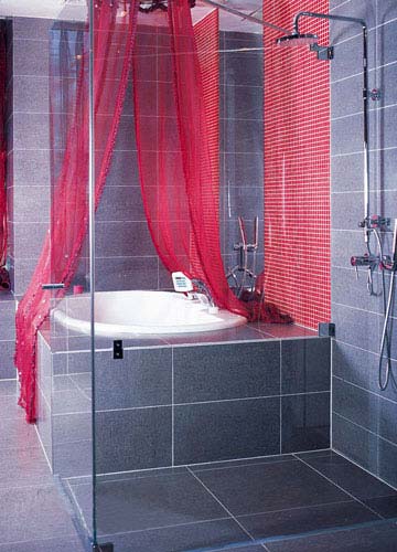 如果原來的淋浴空間充裕,可以直接在淋浴空間安置浴缸,并在浴缸上安裝半懸空一字形拉門或是折疊式拉門。直接在浴缸上安裝的半懸空設(shè)計可以節(jié)省一部分造價,而且保暖性能也更好。與一字形拉門相比,折疊式拉門價格相對高一些,不過保暖性還要更好。