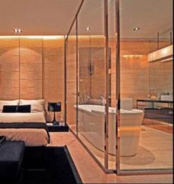 現(xiàn)代感的室內(nèi)裝飾在選材上不再局限于石材、木材、面磚等天然材料,而是將選擇范圍擴大到金屬、涂料、玻璃、塑料以及合成材料,并且夸張材料之間的結(jié)構(gòu)關系,從而塑造出一種區(qū)別于傳統(tǒng)風格的、具有很大張力的室內(nèi)空間。