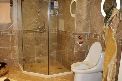 比如在衛(wèi)生間貼瓷磚的時(shí)候人們總希望做個(gè)腰線,這樣會(huì)比較好看??墒茄€往往是很貴的,其實(shí)開動(dòng)腦筋,換種思路也能夠起到同樣的效果??梢园研l(wèi)生間進(jìn)門的主視角那個(gè)位置的瓷磚換成別的顏色,例如黑色、金色等,這樣也能突出整面墻的跳躍效果,還省下了不少錢。