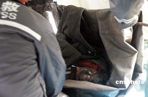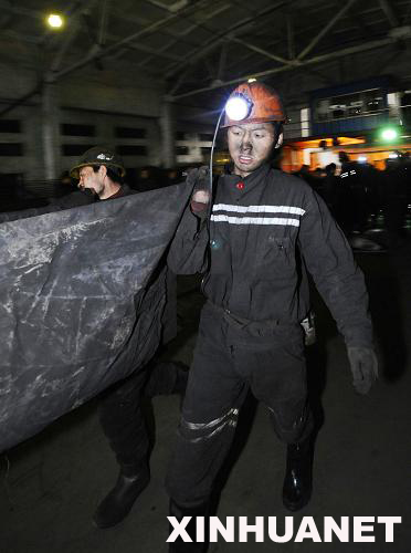 2月22日山西焦煤集團(tuán)屯蘭煤礦發(fā)生瓦斯爆炸事故,救援人員抬出一具遇難者遺體。新華社記者 燕雁攝