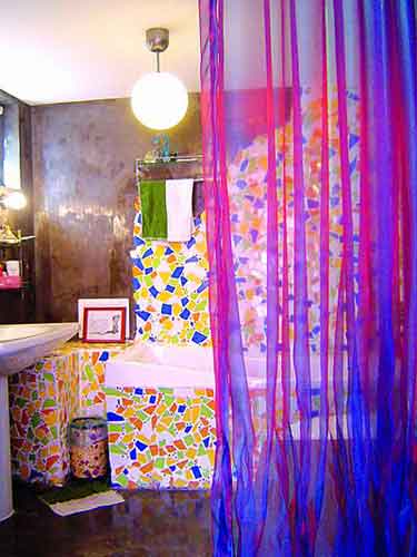 概要: 浴室空間中總是充滿(mǎn)著水的氣質(zhì)。和水在一起,浴室的氣質(zhì)是變化多端的。而這種氣質(zhì)則取決于衛(wèi)浴產(chǎn)品的質(zhì)感和色彩。彩色衛(wèi)浴的浪漫情調(diào) 彩色衛(wèi)浴的浪漫情調(diào) 無(wú)論你選擇什么樣的藍(lán)色做衛(wèi)浴色彩,它都代表著涼爽、平靜和泰然自若。如果你感覺(jué)純粹的藍(lán)色太多了,可以試試藍(lán)綠色,它較為輕松,且具有平衡的色感。