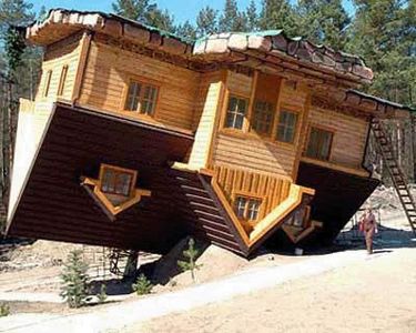 波蘭Syzmbark地區(qū)的這種完全倒置過來的房子,看起來十分不可思議,帶給人們夸張的視覺沖擊