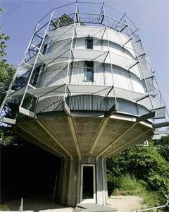 德國弗萊堡市一座可以轉(zhuǎn)動(dòng)的房屋,利用了太陽能來實(shí)現(xiàn)轉(zhuǎn)動(dòng)的,冬天會把正面轉(zhuǎn)向太陽,夏天則把有隔熱設(shè)計(jì)的另一面轉(zhuǎn)過來。