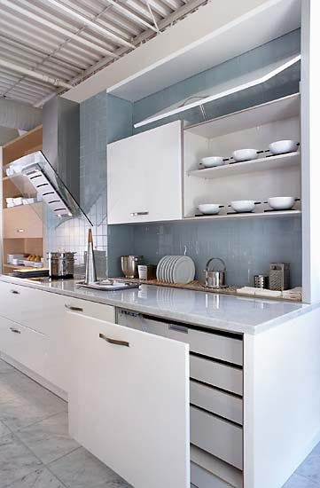 設(shè)計(jì)師:當(dāng)初進(jìn)口品牌的整體廚房出現(xiàn)在市場(chǎng)時(shí),其抽油煙機(jī)的外形與整體廚房的和諧設(shè)計(jì)讓人們眼前一亮。的確,平板式的機(jī)體設(shè)計(jì),簡(jiǎn)潔時(shí)尚。雖然價(jià)格不菲,仍頗受市場(chǎng)歡迎。然而,它并不適合中國(guó)菜煎、炒、烹、炸的烹飪形式,因?yàn)榧療熣痔珳\或根本就沒(méi)有集煙罩,來(lái)不及抽走的油煙外溢擴(kuò)散嚴(yán)重。時(shí)間一長(zhǎng),油膩將附著在柜面或墻面上。廚房的衛(wèi)生就成為另一個(gè)讓你頭疼的問(wèn)題。
