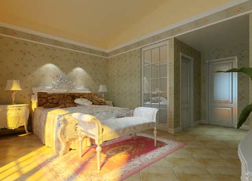 主臥:碎花壁紙?jiān)V說著主人度假的浪漫與悠然,床頭成雙的背景燈像不像愛人之間在親密耳語?
