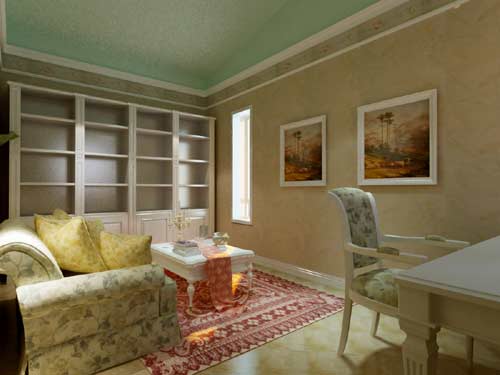 書房:歐式復(fù)古的家具和油畫,散發(fā)著簡(jiǎn)•奧斯汀式優(yōu)雅從容的書卷氣息。