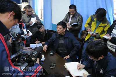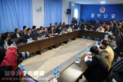 在晉寧縣公安局,調(diào)查委員會(huì)聽(tīng)取警方、檢方的介紹,有大批媒體采訪。新華社記者 王研 攝
