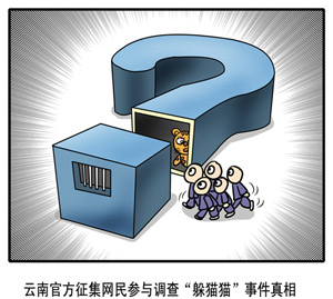 隨著“躲貓貓”一詞在網(wǎng)絡(luò)上日漸流行,網(wǎng)友相互間問(wèn)候、戲謔也有了新說(shuō)法:“今天你躲貓貓了嗎?”“你再這樣,小心我讓你躲貓貓!”針對(duì)“躲貓貓”致人死亡的事件,網(wǎng)友及社會(huì)人士代表組成的調(diào)查委員會(huì)20日開(kāi)始調(diào)查,記者也成為委員會(huì)成員之一。調(diào)查委員會(huì)最終未能接觸到核心人證物證,因此雖然7000余字的調(diào)查報(bào)告已經(jīng)公布,但廣大網(wǎng)民心中仍有不少疑問(wèn)。