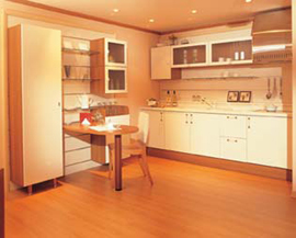 (2)強化復(fù)合木地板:強化復(fù)合木地板是近幾年來流行的地面材料。它是在原木粉碎后,填加膠、防腐劑、添加劑,經(jīng)熱壓機(jī)高溫高壓壓制處理而成,因此它打破了原木的物理結(jié)構(gòu),克服了原木穩(wěn)定性差的弱點。復(fù)合地板的強度高、規(guī)格統(tǒng)一、耐磨系數(shù)高、防腐、防蛀而且裝飾效果好,克服了原木表面的疤節(jié)、蟲眼、色差問題。