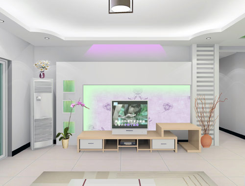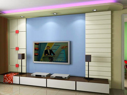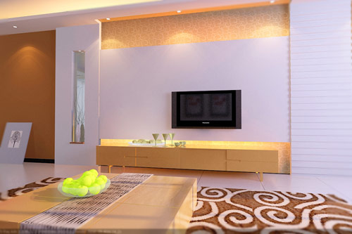 電視背景墻的燈光布置,多以主要飾面的局部照明來(lái)處理,還應(yīng)與該區(qū)域的頂面燈光協(xié)調(diào)考慮,燈殼尤其是燈泡都應(yīng)盡量隱蔽為妥。背景墻的燈光不像餐廳經(jīng)常需要明亮的光照,照度要求不高,且光線應(yīng)避免直射電視、音箱和人的臉部。收看電視時(shí),應(yīng)有柔和的反射光作為基本的照明就可以了。