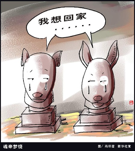 漫畫:魂牽夢繞 圓明園兔首鼠首銅像是英法聯(lián)軍在侵略中國戰(zhàn)爭中劫掠走,并流失海外多年的珍貴文物,中國對其擁有不可置疑的所有權(quán)。按照國際公約,這些文物理應(yīng)歸還中國。這已經(jīng)成了國內(nèi)外多數(shù)人的共識,正義在我們一邊。 公道自在人心。隨著時代的進(jìn)步,歸還因戰(zhàn)爭劫掠的文物已經(jīng)成為人類文明的呼聲。我們流失在海外的國寶,也一定會回到祖國。對此,我們有耐心,更充滿信心。 新華社發(fā)