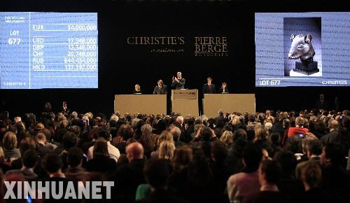 新華網(wǎng)巴黎2月25日電(記者鄭甦春 尚栩)巴黎時間25日晚,在法國巴黎大皇宮舉辦的“伊夫·圣洛朗與皮埃爾·貝爾熱珍藏”專場拍賣會上,圓明園流失文物鼠首和兔首銅像分別以1400萬歐元落錘。