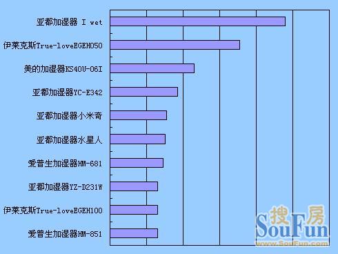 根據(jù)搜房家電口碑榜的統(tǒng)計(jì),本周關(guān)注度排名前十的加濕器有: