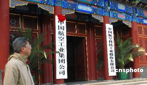 2008年11月7日,位于北京北兵馬司大街的中國航空工業(yè)集團(tuán)公司正式掛牌。中國航空工業(yè)集團(tuán)公司由原中國航空工業(yè)第一集團(tuán)公司和中國航空工業(yè)第二集團(tuán)公司合并組建成,合并后的中航集團(tuán)公司,集中了中國航空制造業(yè)的核心力量。新的集團(tuán)公司設(shè)有防務(wù)、運(yùn)輸機(jī)、發(fā)動機(jī)、直升機(jī)、機(jī)載設(shè)備與系統(tǒng)、通用飛機(jī)、航空研究、飛行試驗(yàn)、貿(mào)易物流、資產(chǎn)管理等十大產(chǎn)業(yè)板塊,下轄近200家子公司、有20多家上市公司,擁有總資產(chǎn)2900多億元人民幣,員工近40萬。 中新社發(fā) 鄒憲 攝